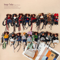 Sevimli Karikatür Süper Yumuşak Kısa Peluş PP Pamuk Dolgulu Unisex Anahtarlık Bebek Kıvırcık Saçlı Siyah Kız Tasarım Çanta Süsü